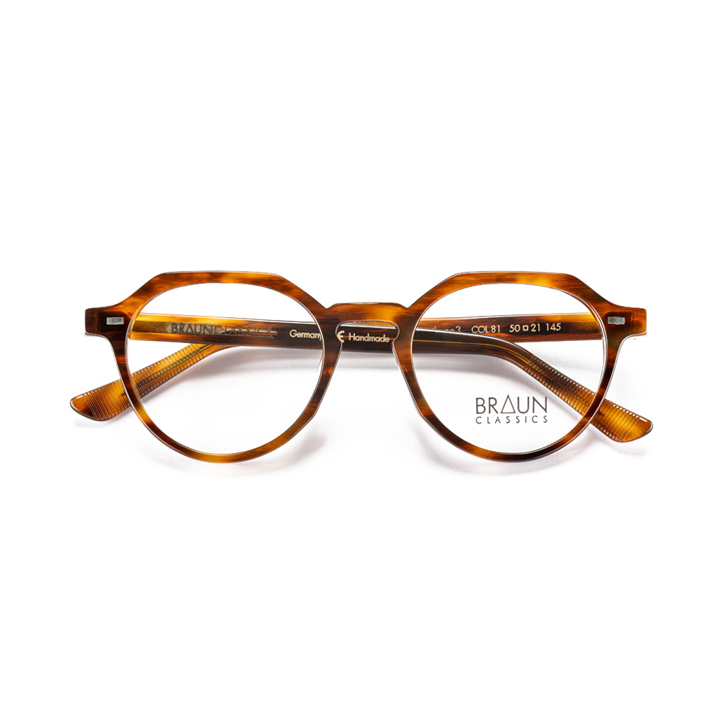 Die Kollektion IKONEN umfasst sechs klassische Modelle aus Acetaten, die sich an der Formensprache der Brillenmode der 30er, 40er und 50er Jahre des letzten Jahrhunderts orientieren. Mittelteil und Bügel werden mit einem fünfrolligen Scharnier verbunden und die flachen Funktionsnieten sind eine Hommage an den Brillenbau vergangener Zeiten.